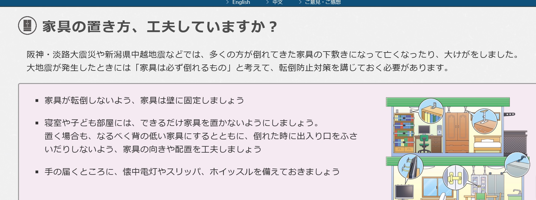 ※ 飲料水とは別に、トイレを流したりするための生活用水も必要です。日頃から、水道水を入れたポリタンクを用意する、お風呂の水をいつも張っておく、などの備えをしておきましょう。