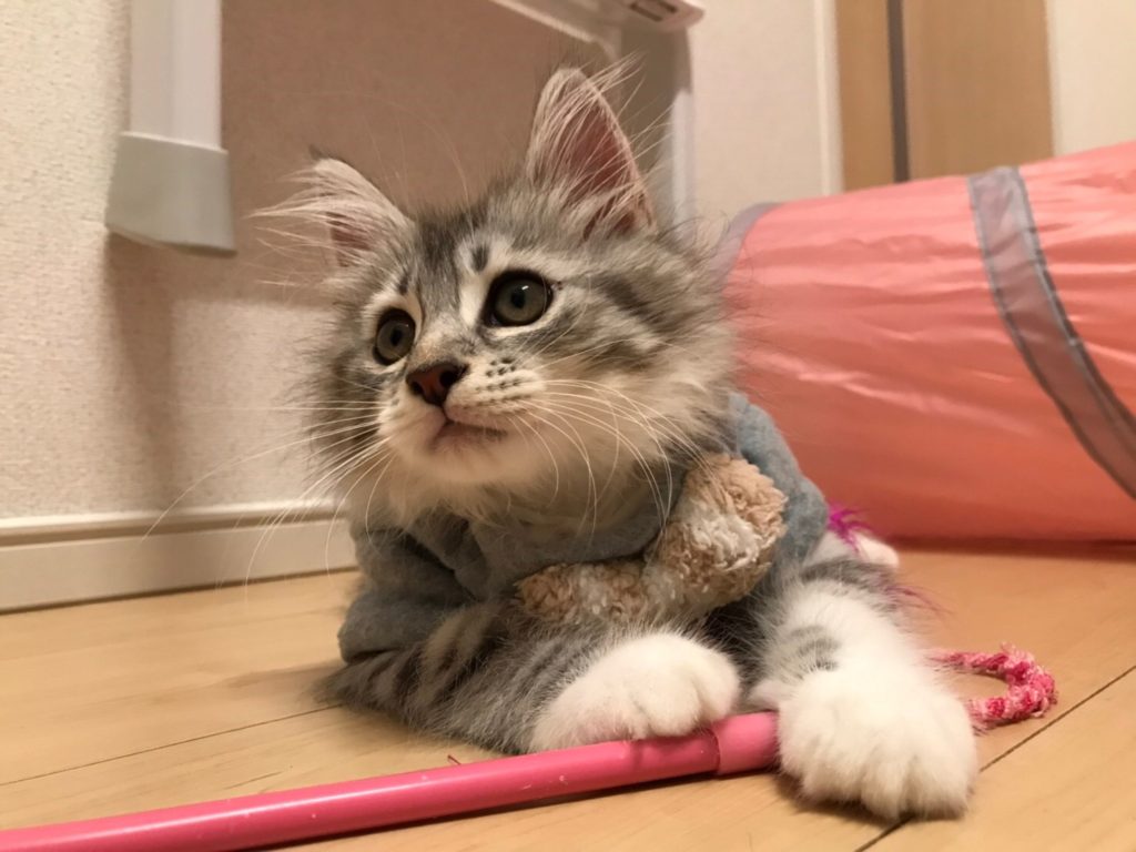 最近は、わんちゃんねこちゃん用の洋服のサイズも着れるくらいまで