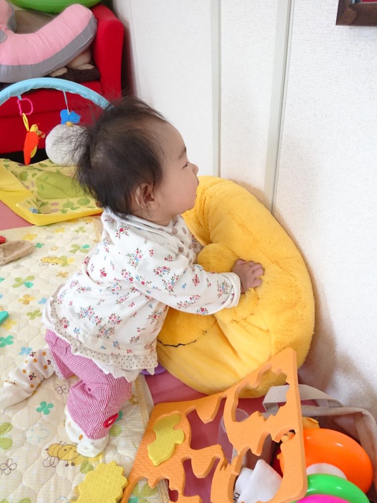 最近は「高速ハイハイ」と「つかまり立ち」がブームの様です。