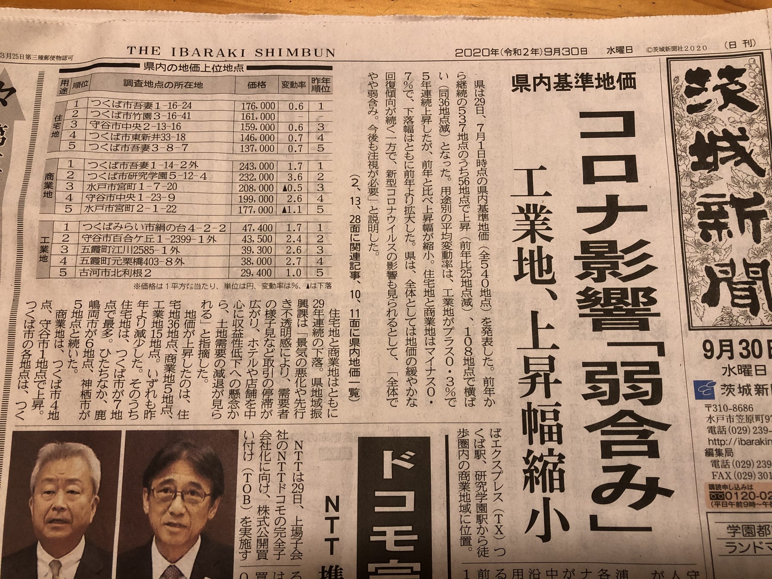 茨城県は29日、令和2年の県内地価調査結果(7月1日時点)を発表しました。