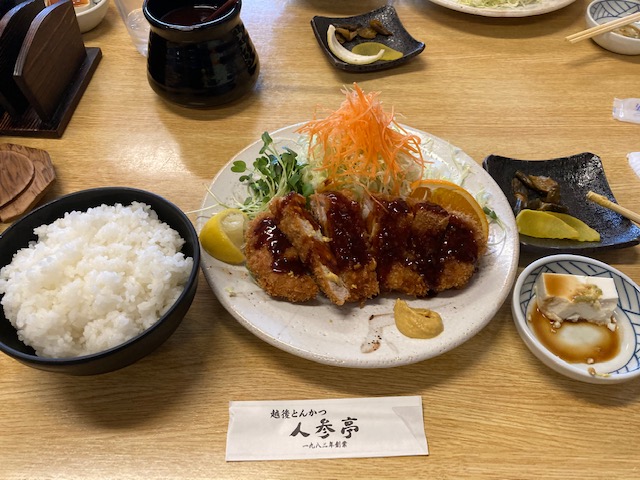 2日目は早めに切り上げ、14時頃には遅いお昼で人参亭でロースかつ定食を頂きました。