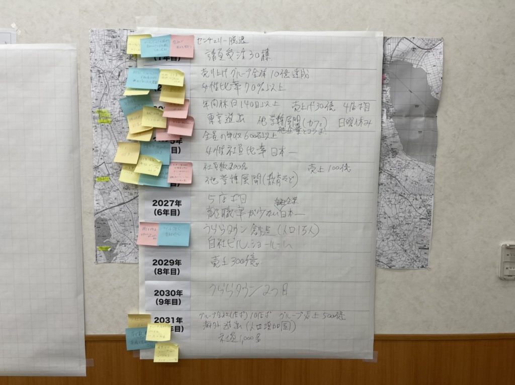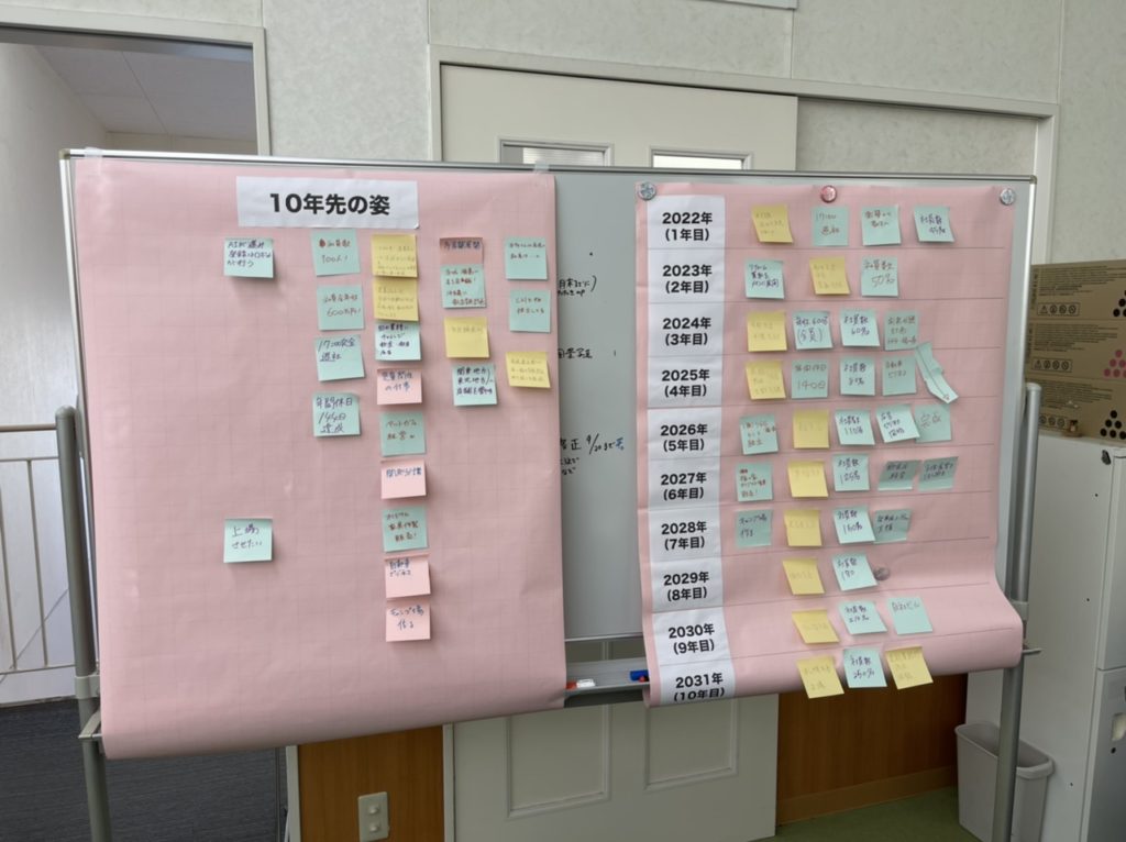 本日は、新卒採用ワークの一環で「自社の10年後を考える」をみんなでたくらみました。