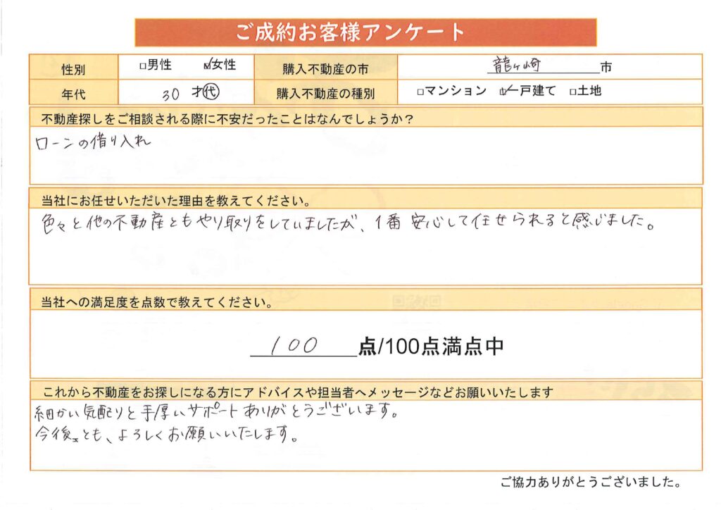 「色々と他の不動産ともやり取りをしていましたが、1番安心して任せられると感じました。」