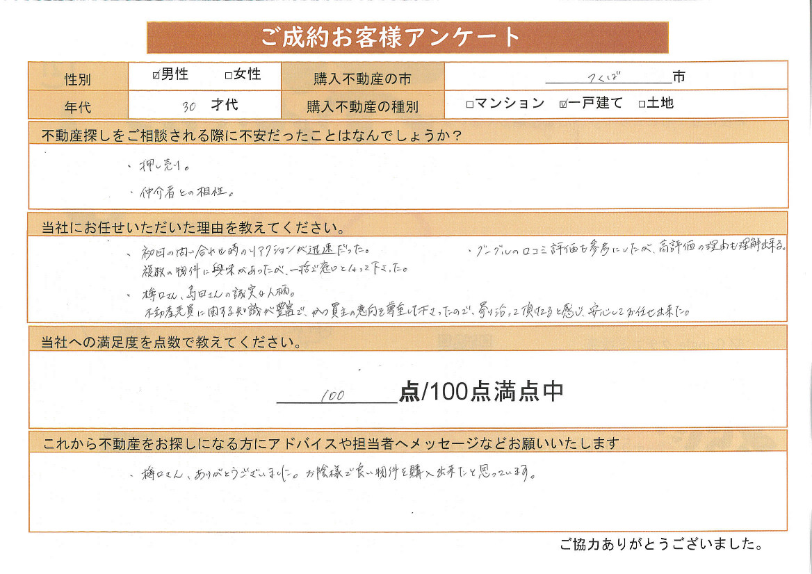 「樽口さんありがとうございました。お陰様で良い物件を購入出来たと思っています。」