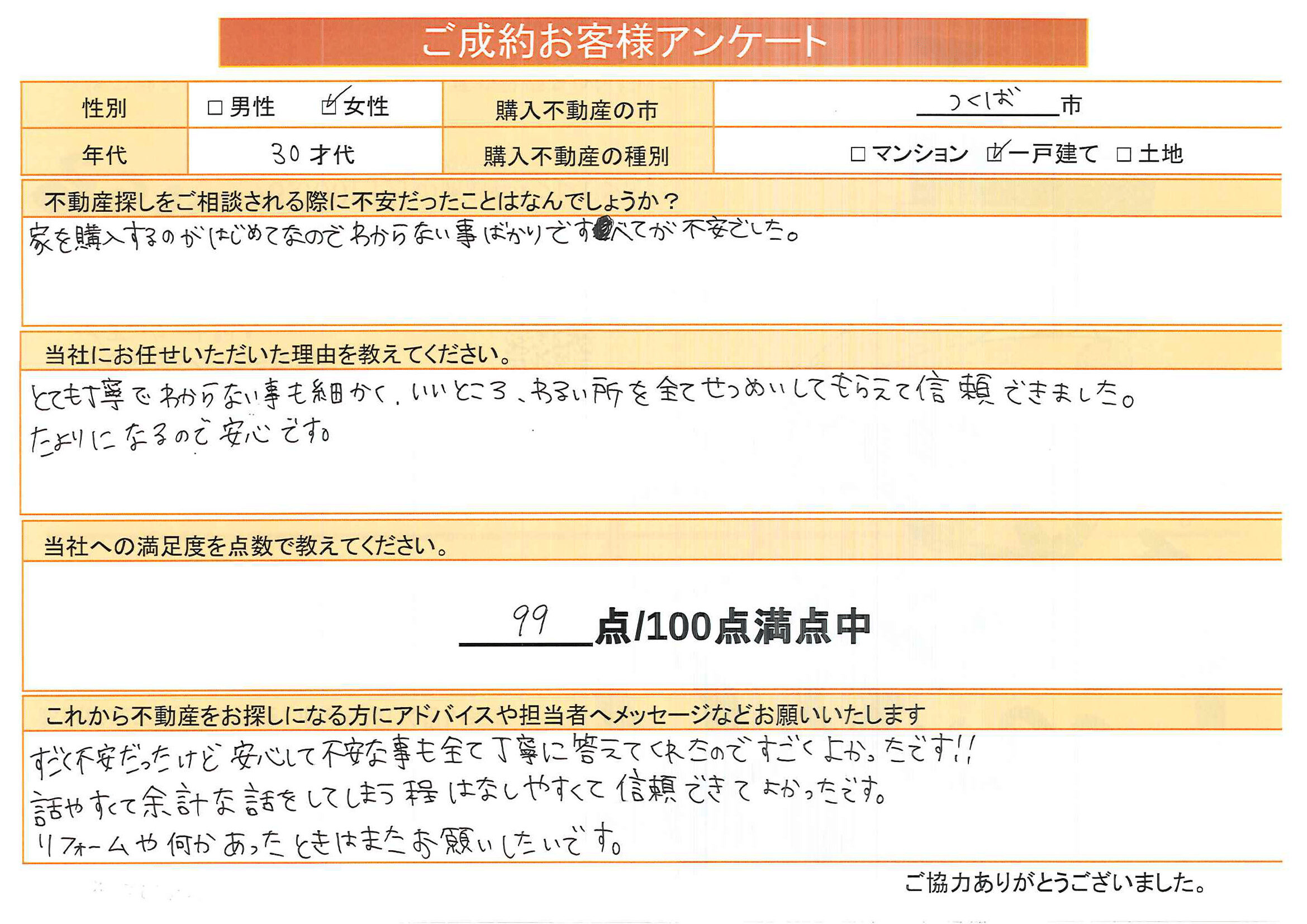 「家を購入するのがはじめてなので、わからない事ばかりですべてが不安でした。」
