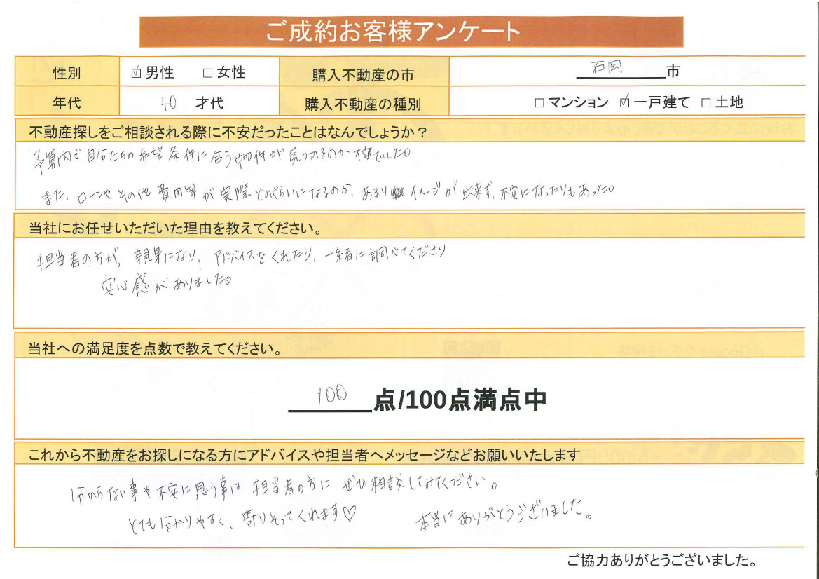 「担当者の方が、親身になり、アドバイスをくれたり、一緒に調べてくださり安心感がありました。」