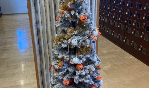 こんにちは!遠藤です(‘◇’)ゞ 私の毎週水曜日のルーティン!【天然温泉 湯舞音】龍ケ崎店♨ 先週から入口の脇に【ハロウィン★クリスマスツリー】が展示されました!何歳になっても可愛い…