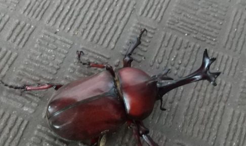 本日はただの親ばか西村が担当いたします。 ある朝、玄関を出たとたん、足元に何かが・・! 立派なカブトムシ。しかもまだまだ色が薄くて羽の一部がペコペコしていて、もしかしたら羽化したてかも・・?思われる状態。 結局その後3日…