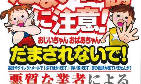 皆様、こんにちは! 営業2課の吉田です。 自分だけは被害にあわない! 自分は大丈夫! と、思わないで迷わずにご相談です! 騙される私が悪いではなく、何か起こる前に 身近の近親者が相談に乗れる関係づくりが非常に大切です!