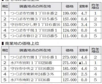 19日、今年1月1日時点の全国の公示地価を発表されました。 県内で最も地価が高かったのは、住宅地が前年に続きつくば市竹園1丁目でした。商業地もつくば市竹園1丁目で、前年まで24年連続トップだった水戸市宮町1丁目は2位に下…