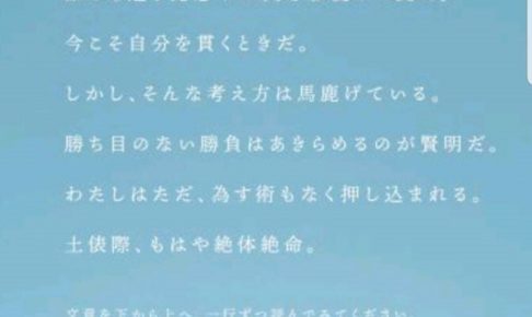 こんにちは♪ 営業1課の遠藤です。 西武そごう様の正月広告がかっこよかったので 皆さんにも見て頂きたくて載せてみました♪ 上から読むと物凄くネガティブな内容となっているのですが 下から読むと意味がひっくり返る面白い広告で…