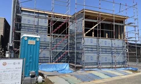 福の家で建築中のモデル棟が上棟しました。 インナーガレージ、2階リビングと特徴的な建物になります! ぜひ完成をご期待ください。