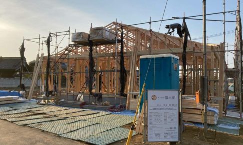 本日、M様邸が無事に上棟しました。 平屋で35坪という大きな家です。 M様、この度は上棟おめでとう㊗️ございます。